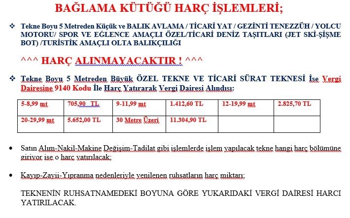 Bağlama Kütüğü Harç Miktarları 2020